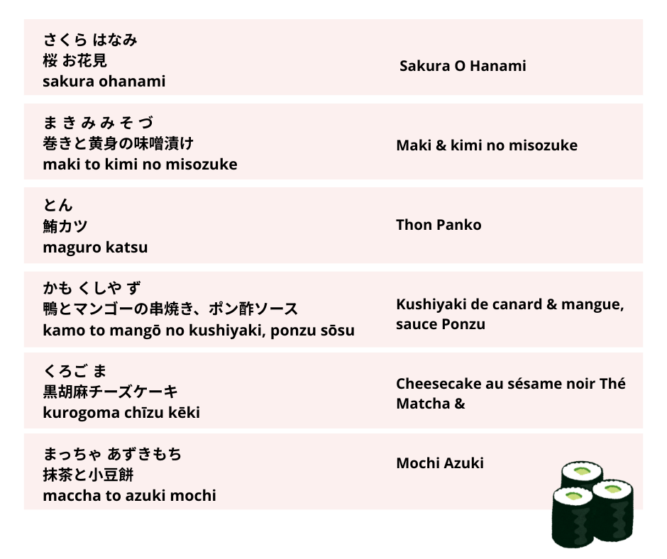 Menu du repas japonais